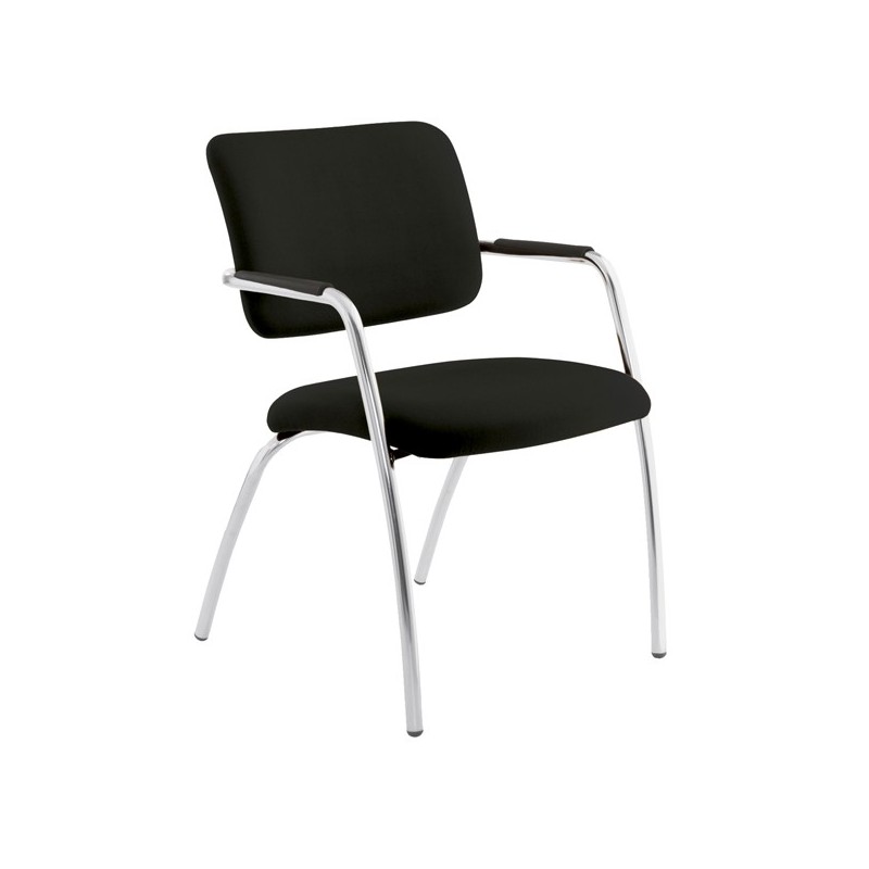 Seduta visitatore 4 gambe - struttura cromata - completa di braccioli. Rivestimento in tessuto "PLUS - Bondai" 100% poliestere no flame e certificazioni di infiammabilità 1.IM UNI 9175. Alt. tot: 83cm; Prof.tot: 59cm; Alt.schienale: 34cm; Largh.schienale: 50cm; Largh. sedile: 50cm; Prof.sedile: 45cm; Alt.sedile: 45cm.