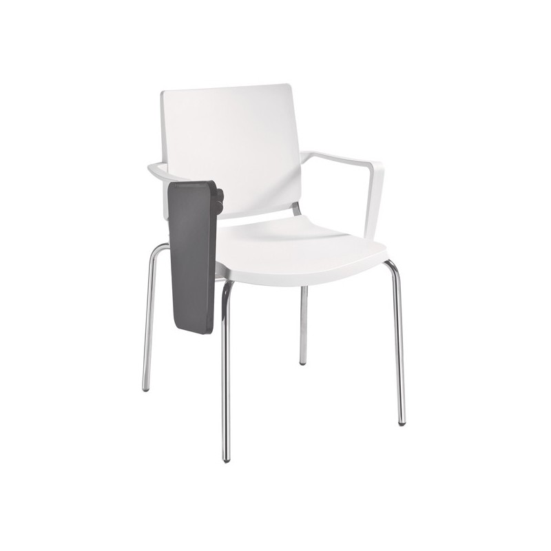 Seduta comunità in 100% PPL e acciaio cromato - con tavoletta ribaltabile - braccioli inclusi. Alt. tot: 84cm; Prof.tot: 55cm; Alt.schienale: 39cm; Largh.schienale: 40cm; Largh. sedile: 45cm; Prof.sedile: 45cm; Alt.sedile: 45cm.