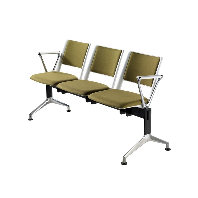 Panca a 3 posti - gamba in acciao e alluminio - con braccioli fissi. Rivestimento seduta in tessuto "SUPER - King L" 100% TREVIRA e reazione al fuoco classe 1. Alt.tot: 80cm; Prof.tot: 54cm; Alt.schienale: 37cm; Largh.schienale: 44cm; Largh.sedile: 45cm; Prof.sedile: 41cm; Alt.sedile: 45cm. Largh. totale: 153cm. Certificazioni: EN 16139 : 2013.