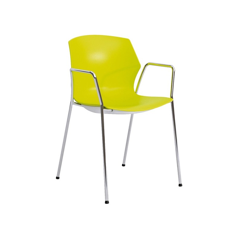 Seduta visitatore 100% polipropilene con 4 gambe struttura cromata - altamente impilabile - braccioli inclusi. Alt. tot: 80,5cm; Prof.tot: 49cm; Alt.schienale: 33,5cm; Largh.schienale: 43cm; Largh. sedile: 43cm; Prof.sedile: 40cm; Alt.sedile: 47cm.