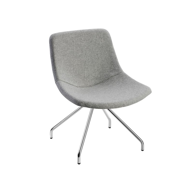 Poltroncina su 4 gambe in acciaio cromato - senza braccioli. Rivestimento in tessuto "FASHION - Lana melange" 100% pura lana vergine e certificazioni di infiammabilità 1IM UNI 9175. Alt. tot: 78cm; Prof.tot: 58cm; Alt.schienale: 37cm; Largh.schienale: 45cm; Largh. sedile: 52cm; Prof.sedile: 44cm; Alt.sedile: 42cm.