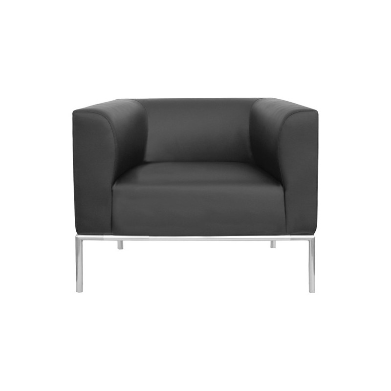 Poltrona con struttura in acciaio e multistrato di faggio. Rivestimento seduta in tessuto "PLUS - Eco leather" idrorepellente, facile da pulire, senza flatati e flame retardant. Alt. tot: 71cm; Prof.tot: 81cm; Alt.schienale: 29cm; Largh.schienale: 48cm; Largh.sedile: 49cm; Prof.sedile: 57cm; Alt.sedile: 45cm.