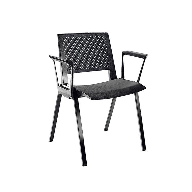 Seduta visitatore 100% polipropilene con struttura in acciaio nero - aggancio rapido a scomparsa - completa di braccioli fissi. Alt.tot: 80cm; Prof.tot: 57cm; Alt.schienale: 33cm; Largh.schienale: 47cm; Largh.sedile: 53cm; Prof.sedile: 40cm; Alt.sedile: 46cm. Certificazioni: EN 1022:2005; EN 1728:2000; EN 1573:2007.