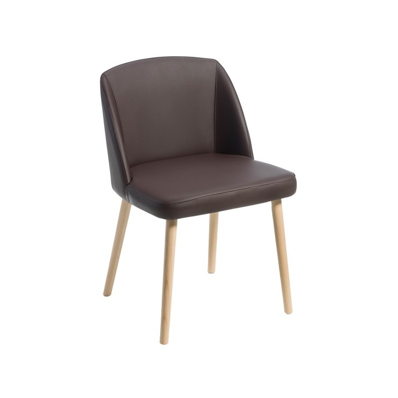 Poltroncina su 4 gambe in legno. Rivestimento seduta in "TOP - vera pelle smerigliata". Alt.tot.: 72cm; Prof.tot.: 54cm; Alt.schienale: 35cm; Larg.schienale: 43cm;; Larg.seduta: 50cm; Prof.Sedile: 42cm; Alt. sedile: 47cm.
