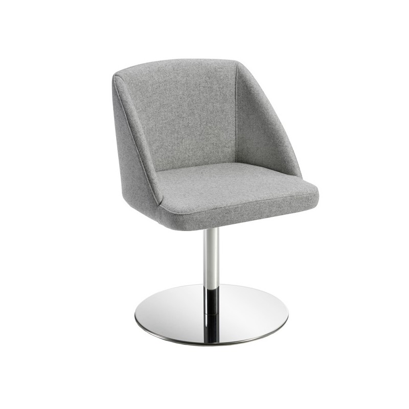 Poltroncina girevole. Rivestimento in tessuto "FASHION - Lana melange" 100% pura lana vergine e certificazioni di infiammabilità 1IM UNI 9175. Alt. tot: 72cm; Prof.tot: 54cm; Alt.schienale: 35cm; Largh.schienale: 43cm; Largh. sedile: 50cm; Prof.sedile: 42cm; Alt.sedile: 47cm.