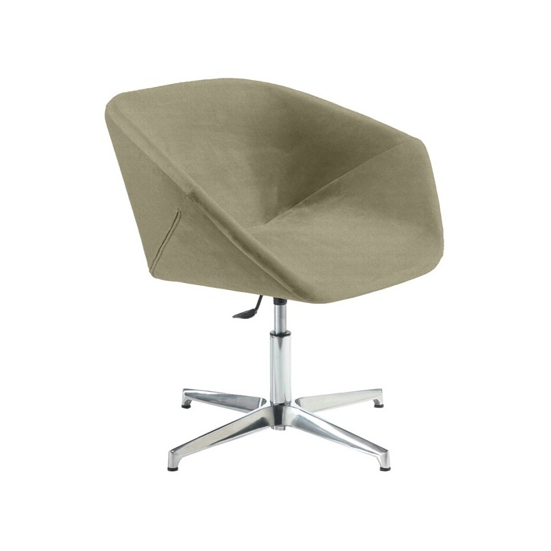 Poltroncina girevole con elevazione a gas - base alluminio. Rivestimento in tessuto "FASHION - Lana melange" 100% pura lana vergine e certificazioni di infiammabilità 1IM UNI 9175. Alt. tot: 86-96cm; Prof.tot: 65cm; Alt.schienale: 38cm; Largh.schienale: 82cm; Largh. sedile: 46cm; Prof.sedile: 45cm; Alt.sedile: 45-55cm.