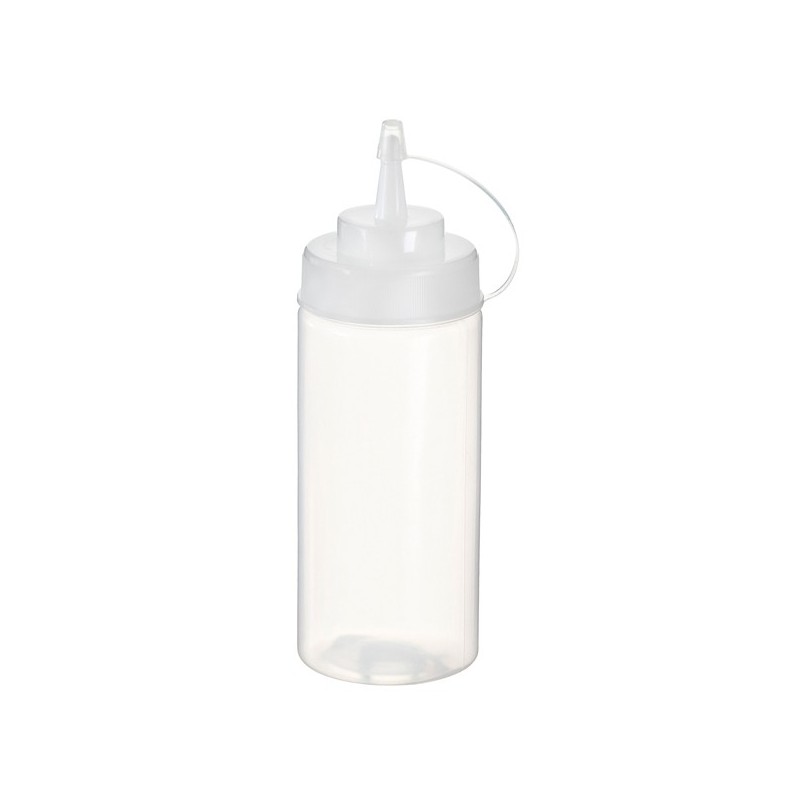 Squeeze Bottle in polietilene trasparente con tappo 500ml/16oz. PE/PP Politene/polipropilene, idoneo al contatto con tutti gli alimenti Lavabile in lavastoviglie Prodotto da non utilizzare unitamente all'alimento nel forno tradizionale e microonde.
