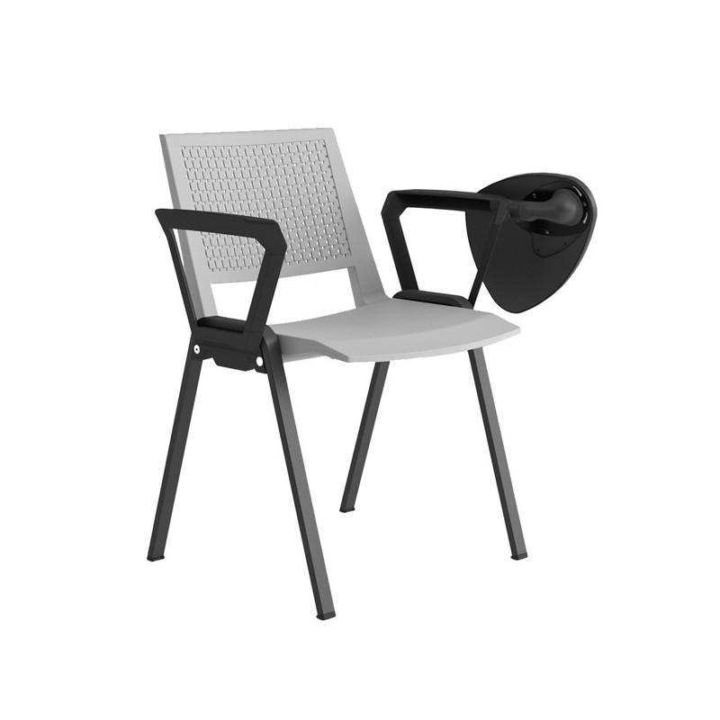 Seduta visitatore 100% polipropilene con struttura in acciaio nero - aggancio rapido a scomparsa - completa di braccioli fissi e tavoletta. Alt.tot: 80cm; Prof.tot: 57cm; Alt.schienale: 33cm; Largh.schienale: 47cm; Largh.sedile: 53cm; Prof.sedile: 40cm; Alt.sedile: 46cm. Certificazioni: EN 1022:2005; EN 1728:2000; EN 1573:2007.