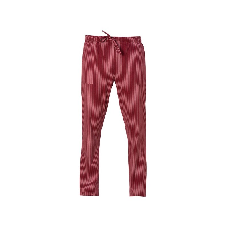 Pantalone vestibilità regular in elegante tessuto gessato 70% cotone e 30% poliestere. Fascione con coulisse, due tasche sui fianchi e piccola tasca posteriore. Taglie: XS, S, M, L, XL, XXL, 3XL, 4XL, 5XL