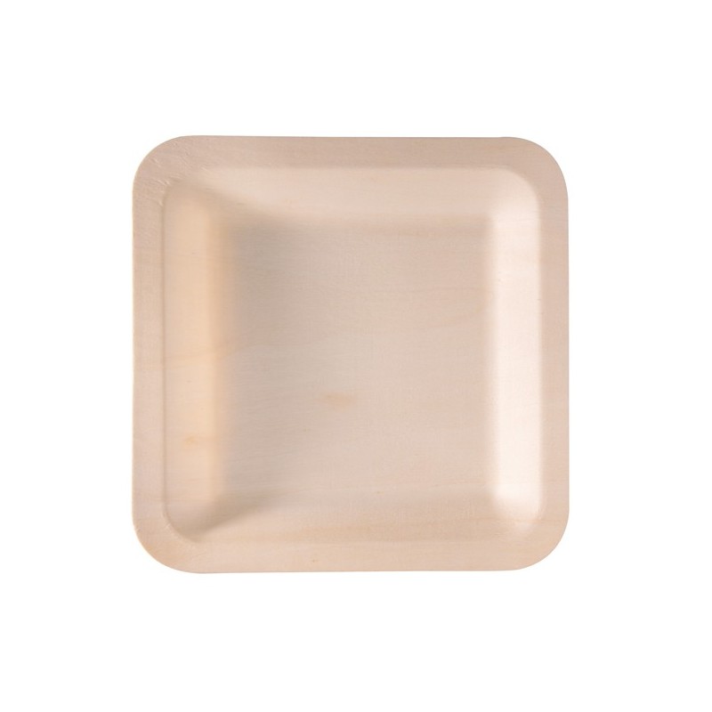 Piatto monouso in legno - quadrato - 21,5 x 21,5 cm - Signor Bio - conf. 50 pezzi
