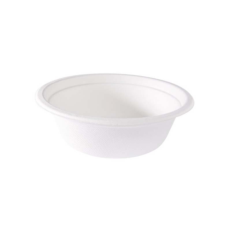 Fibra di canna da zucchero. Prodotto idoneo al contatto con alimenti secondo il regolamento CE n° 1935/2004 e successivi aggiornamenti. Prodotto conforme ai requisiti della Direttiva 94/62/CE per quanto riguarda il contenuto dei metalli pesanti. Non contiene sostanze sottoposte a restrizioni nelle legislazioni attualmente in vigore sui Food Contact Material. Il prodotto è monouso. Conservare il prodotto in luogo asciutto e lontano da fonti di calore (0°C +35°C). Max 180° in forno e max 800W in microonde per 2 min. Utilizzabile in freezer -18°C. Cibi caldi max 90°C per 30min. Max 6 ore a contatto con alimeniti. • Dimensioni : Ø 13,5cm - H 4,7cm • Peso unitario: 10,5gr