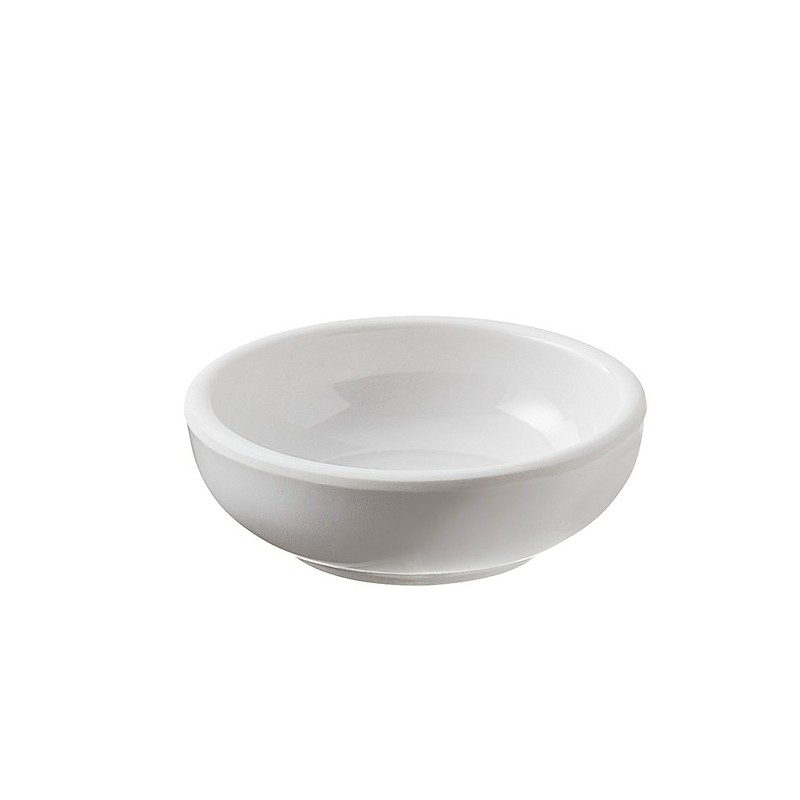 Ciotola tonda in melamina bianca, Ø7x3,5 cm Peso netto 45gr. Capacità: 30 ml Colore Bianco. 100% Melamina, prodotto idoneo al contatto con tutti i tipi di alimenti (T max70°C). Articolo lavabile in lavastoviglie; Da non utilizzare con utensili taglienti. Prodotto da non utilizzare unitamente all'alimento nel forno tradizionale e forno a microonde; Conservare il prodotto in luogo asciutto,lontano dai raggi del sole e fonti di calore(0°C+35°C).