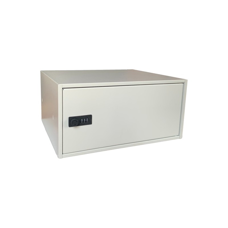 vernice: polvere epoxy poliestere (formulata con pigmento esente da cromo e piombo). Serratura a combinazione meccanica a 3 ruote. Provvisto di fori sul retro e kit di tasselli/viti per fissaggio al muro.Dimensioni esterne: 395x190x325mm; Dimensioni interne:380x180x310mm.