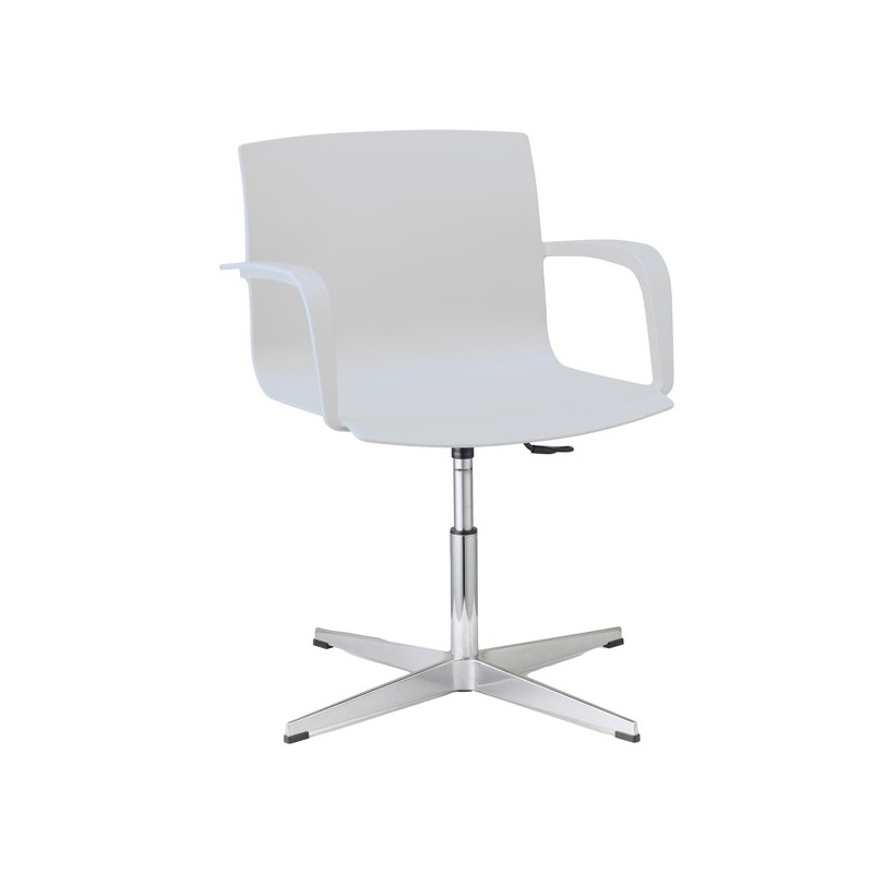 Sedia girevole 100% polipropilene con piedini - elevazione a gas - base alluminio pressofuso - completa di braccioli. Alt. tot: 81-92cm; Prof.tot: 63cm; Alt.schienale: 37cm; Largh.schienale: 48cm; Largh. sedile: 48cm; Prof.sedile: 50cm; Alt.sedile: 45-56cm.