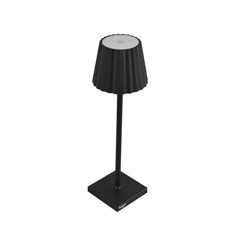 Lampada da tavolo a LED ricaricabile di colore nero in alluminio e PMMA.