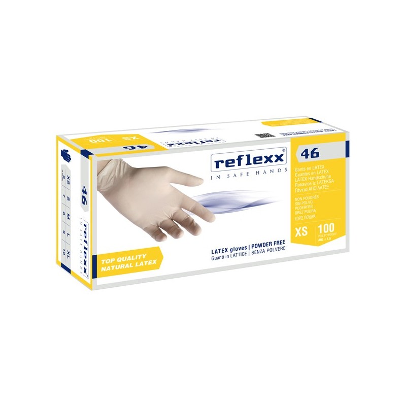 Guanti in lattice R46 - s/polvere - tg L - bianco - Reflexx - conf. 100 pezzi
