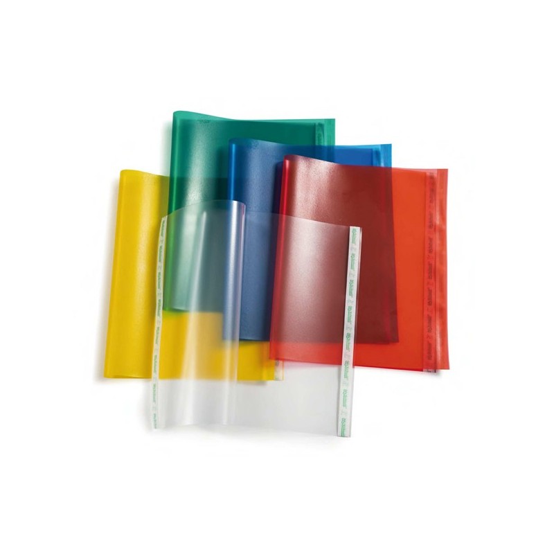 Coprilibro in PP trasparente goffrato 145my, formato 50x31cm. Dotato di bande adesive laterali di 31cm.