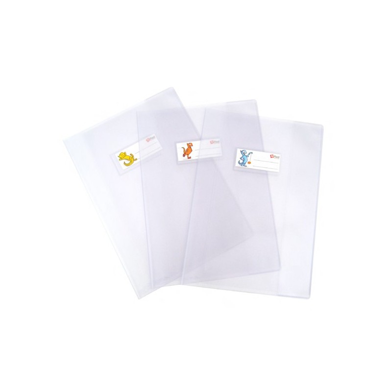 Coprimaxi in PVC trasparente goffrato effetto seta 170my, formato A5. Dotato di alette salva pagina e patelle interne in PVC 120my. Tasca porta nome personalizzabile.