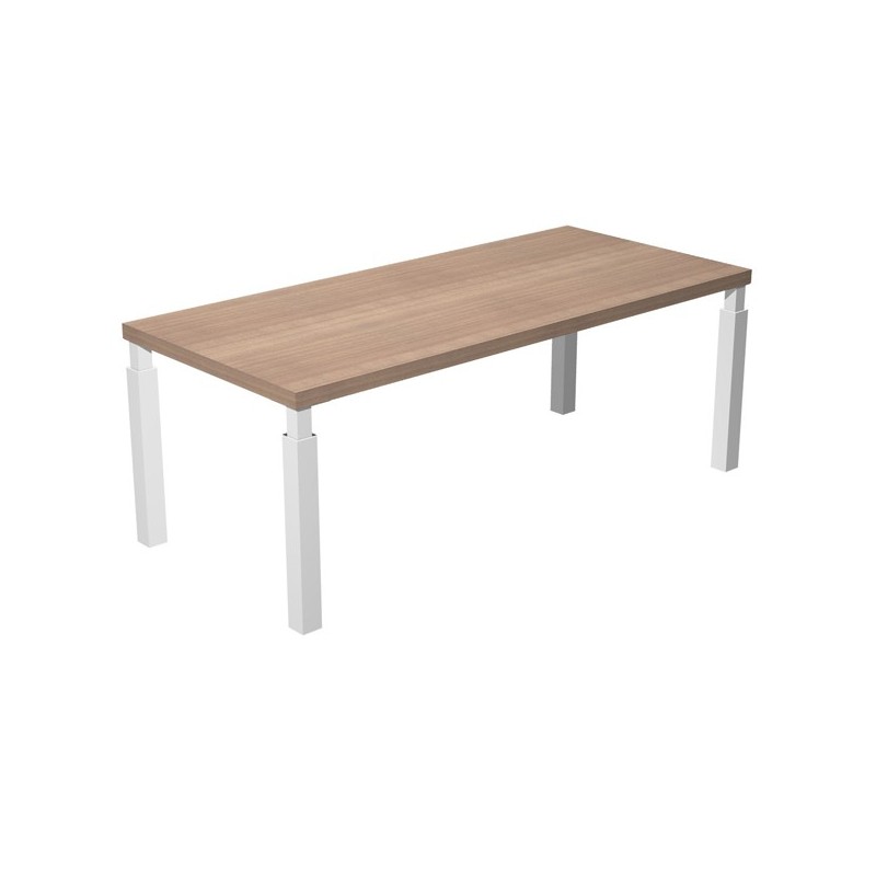 Scrivania direzionale con quattro gambe in metallo a sezione quadrata complete di piedini regolabili in altezza per un perfetto livellamento. Le gambe hanno sezione 70x70mm sul fusto e 40x40 mm nella parte alta e si agganciano al desktop ognuna con una robusta piastra metallica. Desktop (sp. 38 mm) con bordo antiurto in ABS (sp. 2mm). Le gambe, in entrambe le versioni di colore, sono impreziosite da dettagli e particolari cromati. Gambe bianco lucido Dimensioni: 210x90xH74cm