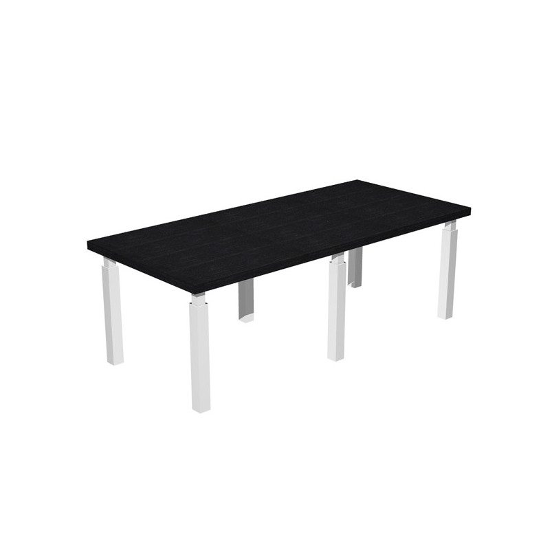 Piano e fianchi sp. 38 mm con bordo antiurto in ABS 3 mm. Piedini regolabili in altezza. Traversa centrale in melaminico spessore 18 mm. Tavolo riunione L220xP100xH74cm Gambe bianco lucido