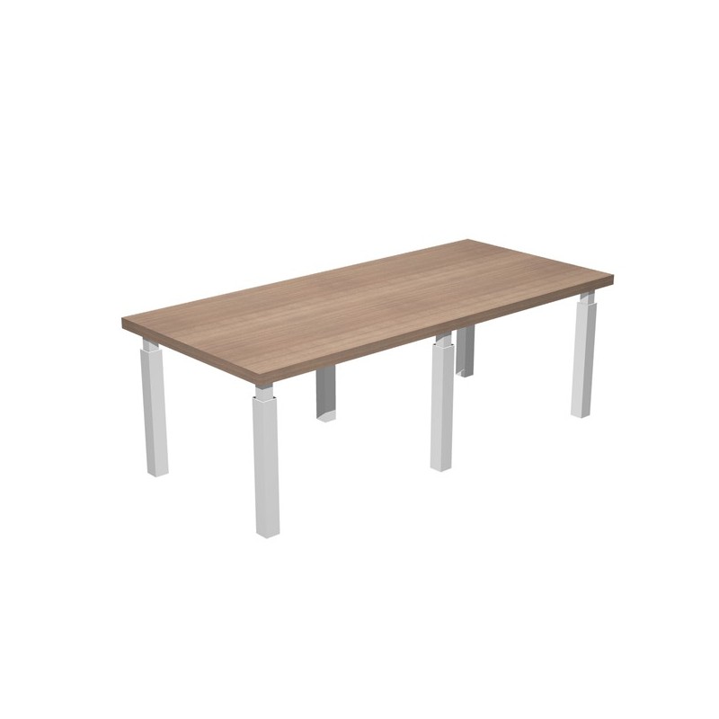 Piano e fianchi sp. 38 mm con bordo antiurto in ABS 3 mm. Piedini regolabili in altezza. Traversa centrale in melaminico spessore 18 mm. Tavolo riunione L220xP100xH74cm Gambe bianco lucido