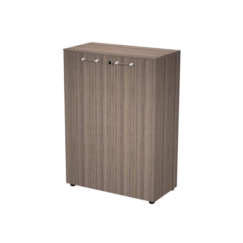 Mobile medio con ante. Robusti mobili (ripiani sp. 25 mm) realizzati in due altezze (basso e medio) per garantire massima flessibilità e componibilità per affiancamento e/o sovrapposizione. Completano la gamma gli eleganti top di finitura (sp. 18 m) e le ante dotate di maniglie e serratura. I mobili sono rifiniti anche sul retro e possono essere utilizzati come partizione fra ambienti. Piedini regolabili in altezza per un perfetto livellamento.