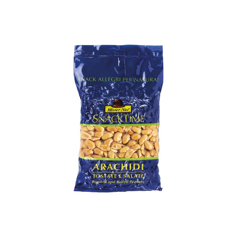 Arachidi tostate e salata in confezione da 250gr. Ingredienti: Arachidi (96%), olio di arachidi, sale. Può contenere tracce di noci, mandorle, nocciole e pistacchi.