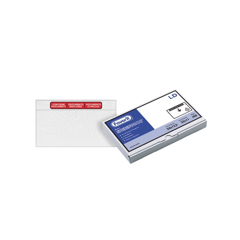 Busta adesiva Speedy Doc - con stampa "contiene documenti" - LD (23 x 11 cm) - LDPE - trasparente - Favorit - conf. 100 pezzi