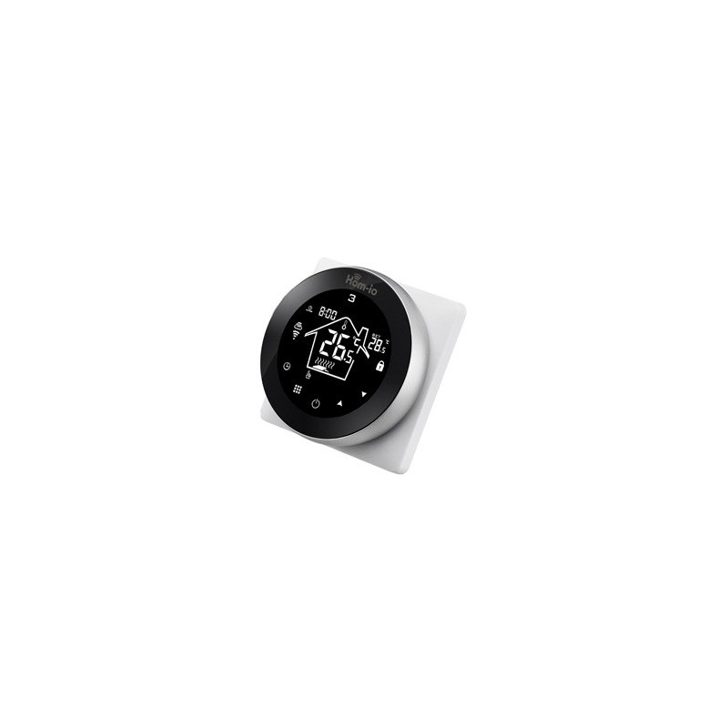 Cronotermostato WiFi Hom-io versione Plus con adattatore scatola 503 incluso. Nuovo ampio display migliorato nella luminosità e nell'angolo di visione, completamente touch screen e con accessorio di montaggio a parete incluso nella confezione. Alimentazione: 90-240Vac 50/60HZ 1. Visualizzazione della temperatura: 0~40° C 2. Precisione di visualizzazione: 0,5° C 3. Sensore sonda: NTC (10k) 1% 4. Programmazione: settimanale ciclico 5. Capacità di contatto: 3A/250V (WW) 6. Installazione: a parete, incasso 7. Dimensioni: H 100mm / 8. W 100 mm / L 65mm 9. Kit di montaggio scatola 503 incluso.