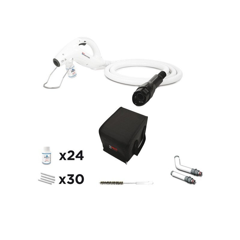 Il KIT POLTI SANI SYSTEM, utilizzato in combinazione con i modelli Polti Vasporetto MV compatibili, è un Dispositivo di Disinfezione a Vapore (DDV) conforme alla norma AFNOR NF T72-110 – ambito medicale e ha dimostrato effetto virucida, battericida, sporicida, fungicida, levuricida e mufficida. Il kit è da collegare esclusivamente agli apparecchi Polti Vaporetto MV per la disinfezione a vapore di superfici e tessuti e per la prevenzione di possibili infezioni. La pistola grazie alla tecnologia brevettata Superheated Chamber, genera vapore saturo secco surriscaldato fino a 180°C che uccide fino al 99,999%* di microrganismi e consente di ridurre il rischio di infezioni. Il vapore fuoriesce sotto forma di nuvola, avvolge le superfici da disinfettare, agisce in pochi secondi e asciuga rapidamente. Permette quindi di effettuare operazioni frequenti durante la giornata senza contatto con le superfici trattate. Nella parte inferiore dell’erogatore è previsto l’aggancio del flacone del detergente HPMed (B), in grado di eliminare gli odori. HPMed è rispettoso dell’ambiente, può essere utilizzato in presenza di persone e animali e può essere utilizzato su superfici e tessuti senza danneggiarli. CONTENUTO DEL KIT: Polti Sani System Gun; 24 flaconi di HPMed + 1 flacone vuoto; 30 stoppini; concentratore di flusso dritto; Concentratore di flusso curvo; Scovolino in ottone per la pulizia dell’ugello vapore; Borsa per contenere la pistola e gli accessori; Protocollo di utilizzo. Il KIT è compatibile con il Vaporetto MV60.20 ( cod.97406) e MV40.20 (cod. 97407).