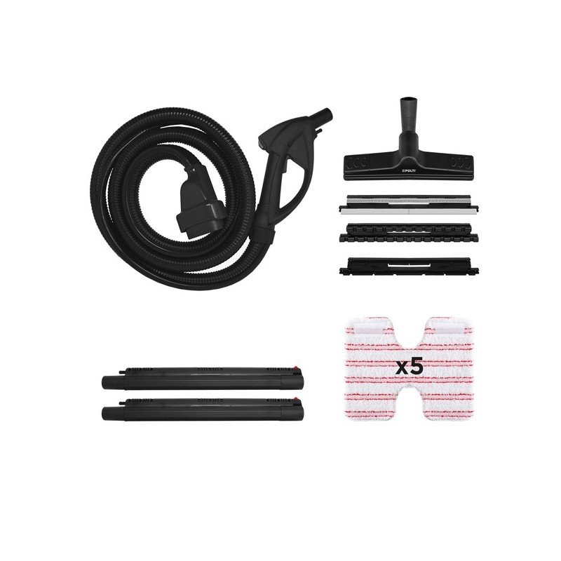 Il Kit consente di utilizzare Polti Vaporetto MV come un pulitore a vapore con aspirapolvere integrato per aspirare, pulire e igienizzare tutte le superfici. Le dimensioni compatte della spazzola multiuso - che viene collegata al tubo flessibile tramite i tubi prolunga - ne permettono l’uso anche in ambienti piccoli. Il panno permette
