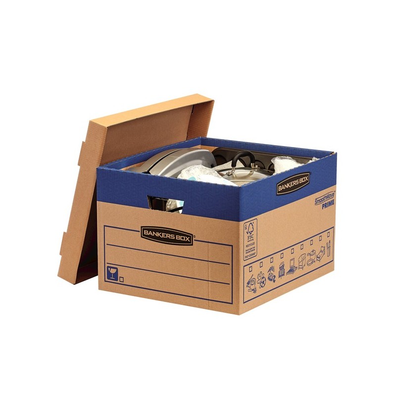 Scatolone fabbricato in robusto cartone ondulato doppio strato su lati e base. Assemblaggio automatico FastFold e chiusura con coperchio senza necessità di nastro adesivo. Icone prestampate e grandi aree etichettabili per identificare velocemente il contenuto. Maniglia per il trasporto preforata e rinforzata. Fabbricato in cartone 100% riciclabile certificato FSC. Dimensioni esterne (cm) 33,5 x 29,2 x 40,4. Formato utile (cm) 33,3 x 28,5 x 39. Peso 0,59 kg