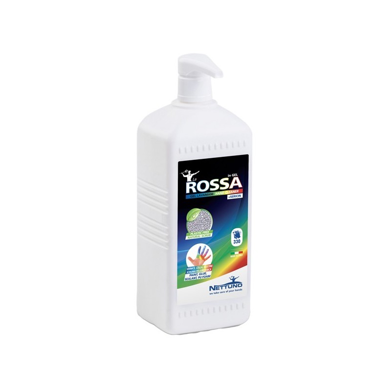 Gel lavamani con microgranuli minerali derivati dalla pomice e arricchito con sericina emolliente. Di color rosso e dal profumo di sandalo patchouli, la Rossa in Gel si caratterizza per le sue ottime proprietà detergenti ed emollienti, queste ultime dettate dalla presenza della sericina, proteina naturale derivata dal baco da seta. Contiene un solvente specifico per la rimozione delle vernici e microgranuli minerali derivati dalla pomice, i quali conferiscono maggior forza alla sua azione pulente. Risulta essere ideale per la rimozione degli sporchi speciali molto tenaci quali vernici, schiuma poliuretanica, colle e siliconi. pH 6.5. Applicazione: Erogare sulle mani asciutte la quantità desiderata di gel, frizionare fino a completa emulsione dello sporco, quindi risciacquare con acqua corrente. Tipo di sporco: Resine; Colle; Sigillanti; Smalto; Schiuma poliuretanica; Vernici; Grafite; Ruggine