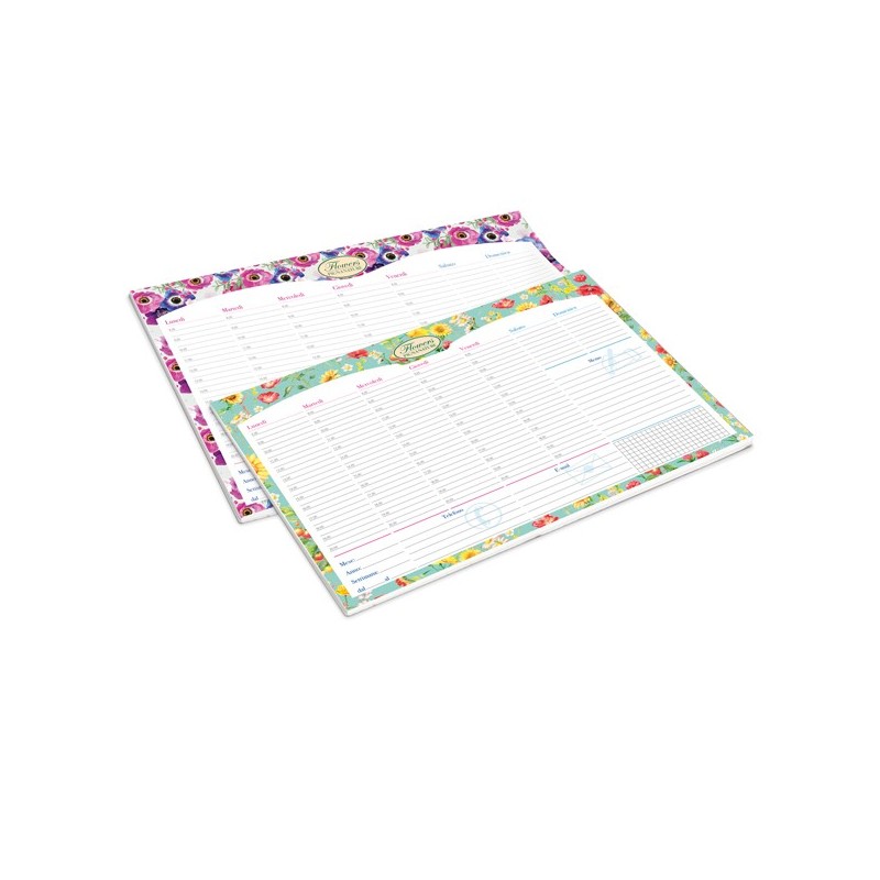 Desk planner settimanale da scrivania. Realizzato in carta da 70gr, 60 fogli. 2 fantasie assortite.