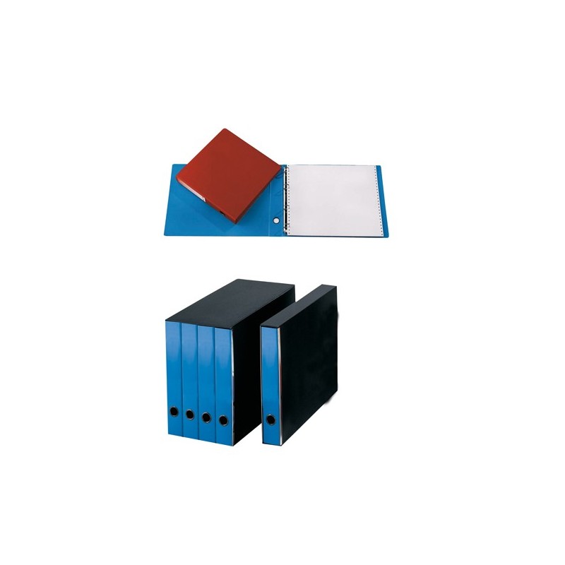 Portatabulati ad anelli in robusto fibrone con meccanismo a 4 anelli e occhiello nel dorso per estrazione. Custodia in fibrone nero. Colore azzurro, formato 31,5x29cm. Dorso 5 cm.