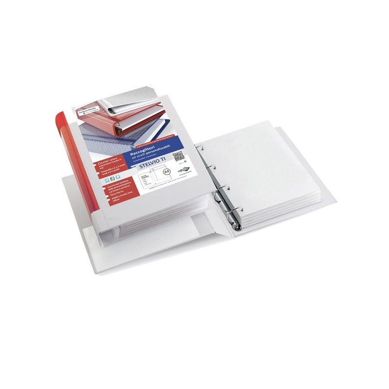 Raccoglitore personalizzabile Stelvio TI - 22 x 30 cm - 4 anelli a D 25 mm - dorso 4 cm - bianco - Sei Rota