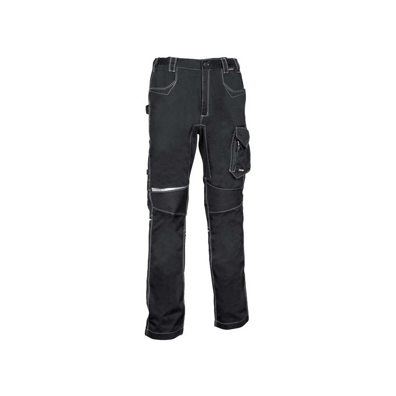 Ampie tasche anteriori, cavallo e parte posteriore in tessuto elasticizzato per massima libertà di movimento, doppia tasca posteriore di cui una con pattina chiuse con velcro, elastico interno in vita, inserti reflex, inserto sopra il ginocchio in costina stretch per flessibilità di movimento, passante portamartello, taglio ergonomico di gambe e ginocchia, tasca laterale con doppia apertura (chiusa con velcro e con zip), tasca portametro. COMPOSIZIONE: 60% cotone - 40% poliestere / Tessuto elasticizzato: 60% cotone - 37% poliestere - 3% elastan. GRAMMATURA: 245 g/m²