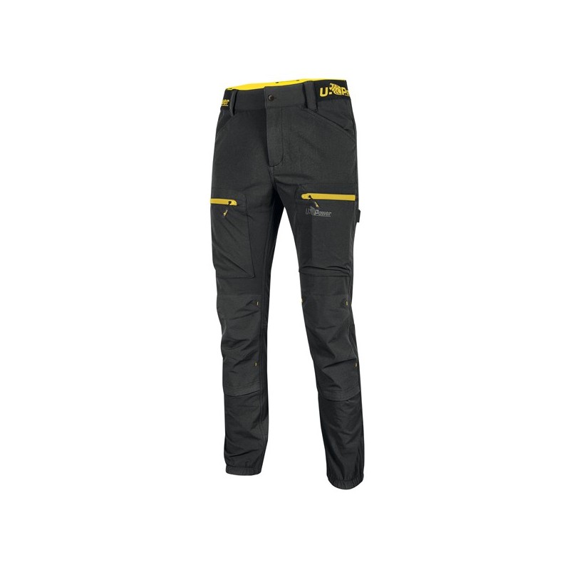 "Pantaloni da lavoro stretch in tessuto U-4 con vestibilità jogging e inserti elasticizzati in vita e sul fondo per offrire una migliore vestibilità. Pantaloni da lavoro rinforzati con battitacco antiusura e carré posteriore accentuato per una maggior protezione della zona lombare. Il tessuto elasticizzato di questi pantaloni da lavoro comodi si muove nelle quattro direzioni simultaneamente garantendo grande libertà di movimento e comfort prolungato, inoltre è idrorepellente, traspirante e ad asciugatura rapida. Horizon è un pantalone uomo multitasche con bottone antigraffio che assicura grande funzionalità e praticità: due ampie tasche anteriori, due tasche multifunzionali frontali con cerniera, due tasche posteriori di cui una chiusa con zip e una con velcro, tasche porta ginocchiera, tasca porta-metro e fettuccia porta-martello.