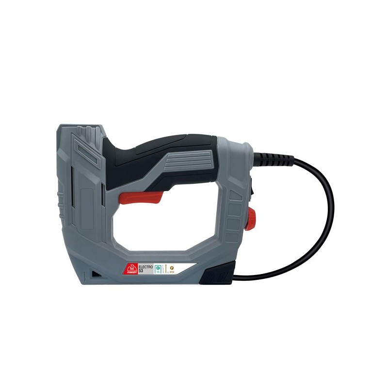 Fissatrice elettrica ideale per tutti i lavori di fissaggio e per l'installazione di isolamenti, allestimenti di stand fieristici ecc. Dotata di manopola di regolazione della potenza di infissione. Velocità: Max. velocità di utilizzo = 20 colpi al minuto.