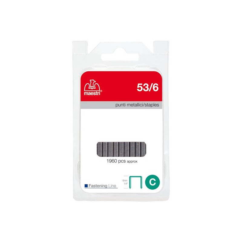 Punti zincati per fissatrici altezza 6mm. Confezionati in blister da 1960 punti.