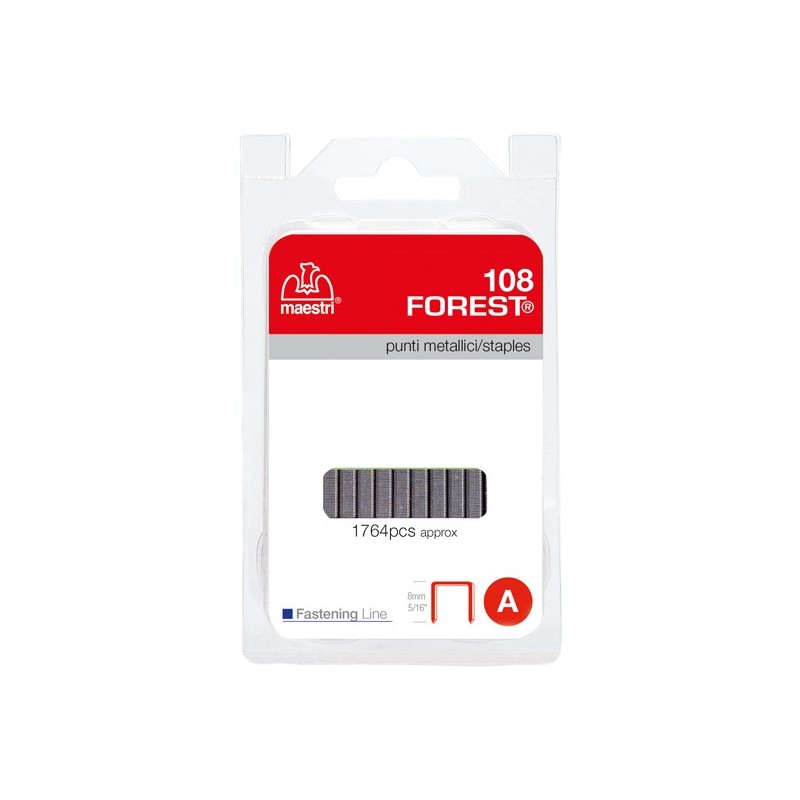 Punti metallici 108 per fissatrici con punte divergenti che garantiscono un'ottima penetrazione ed una eccellente tenuta nel legno. Confezionati in blister da 1764 punti.