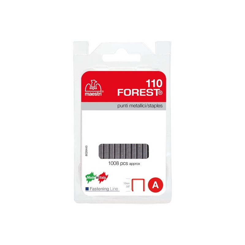 Punti metallici 110 per fissatrici con punte divergenti che garantiscono un'ottima penetrazione ed una eccellente tenuta nel legno. Confezionati in blister da 1008 punti.