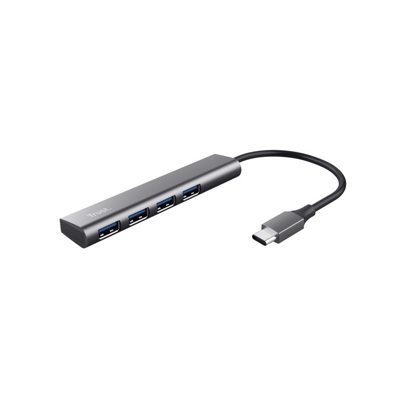 Il raffinato hub USB in alluminio aggiunge al computer 4 porte USB-A in più con una velocità di 5 Gbps con una porta USB-C