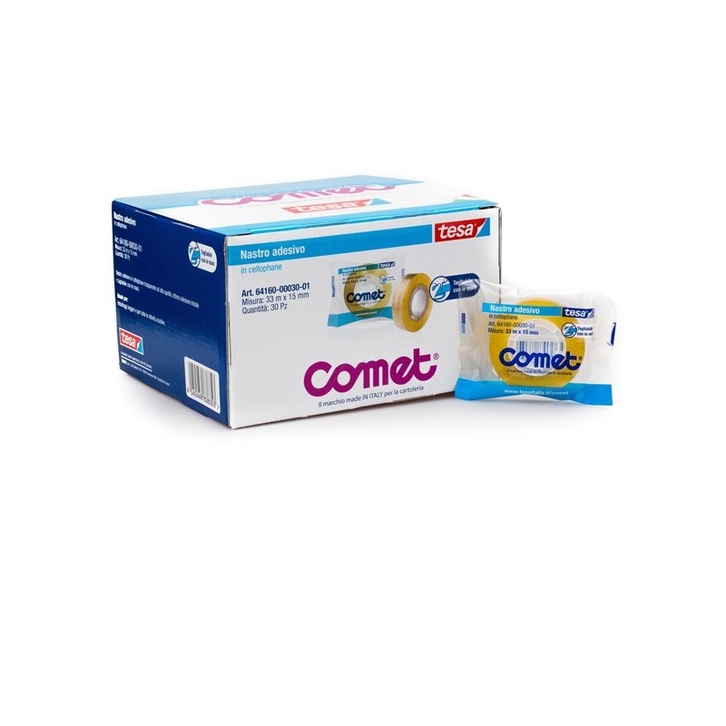 Nastro adesivo - confezionato singolarmente - 15 mm x 33 m - cellophane - trasparente - Comet