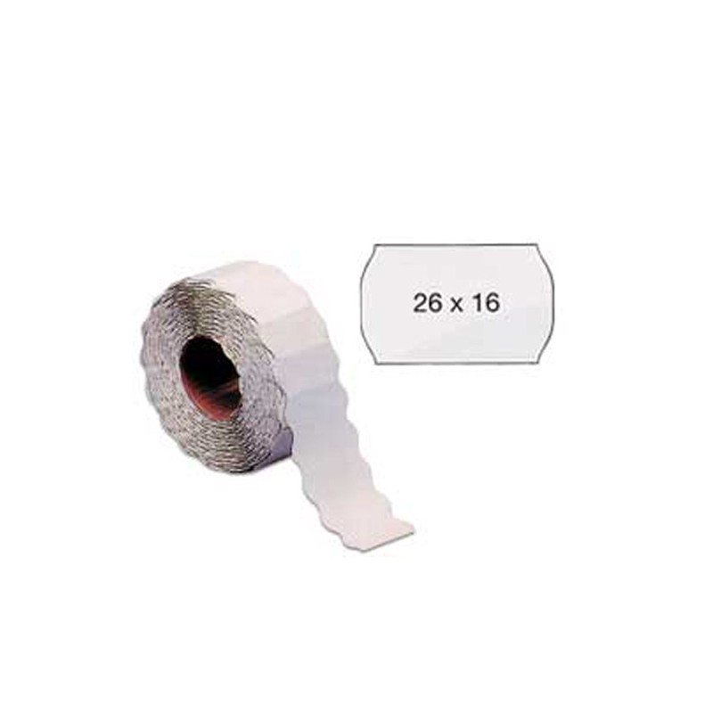 Etichette per prezzatrice MOTEX 2616/2616new/AIREX/METO/PRIX/TOWEL/OPEL. Rotolo da 1000 etichette rettangolari bianche a onda con adesivo rimovibile.