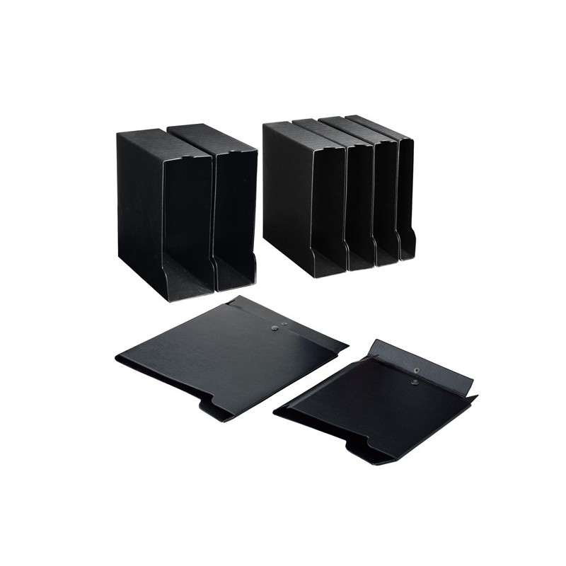 Custodia montabile in Colpan® (cartone rivestito in PVC) adatta a contenere i raccoglitori Sei Rota A4 con anelli da 17 o 25 mm. Protegge da polvere e umidità, si fissa in un attimo tramite bottone. Colore: nero. Formato esterno: 265x320 mm. Formato contenuto: 265x315 mm (A4). Dorso: 35 mm.