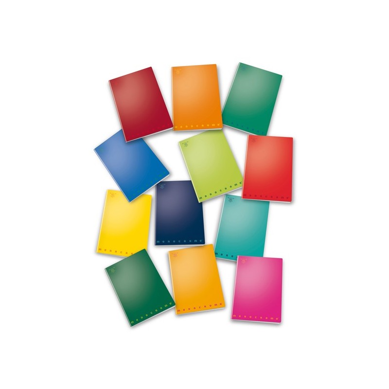 Miniquaderno con punto metallico 40 fogli. Carta 80gr, copertina 200gr trattata a vernice uv. Rigatura: 5mm