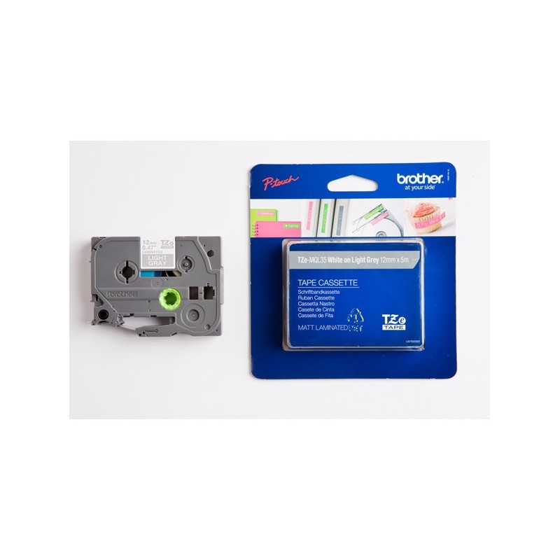 Nastro Brother Laminato opaco da 12 mmx5m Bianco/Grigio chiaro