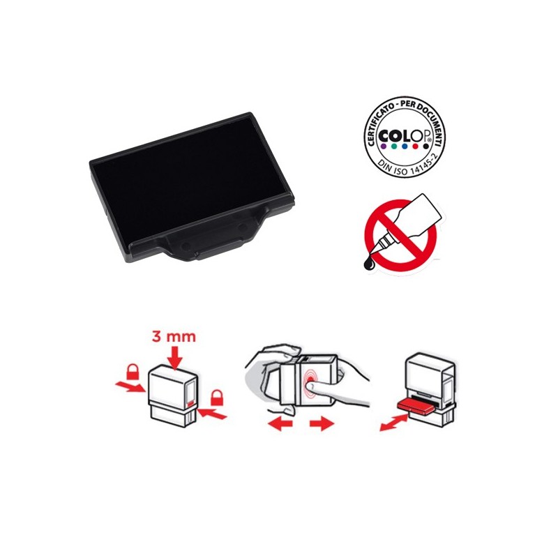 Cuscinetto inchiostrato di ricambio per timbri Colop, facile da sostituire grazie al sistema pop-out/snap-in. Una volta esaurito il cuscinetto deve essere sostituito, non Þ idoneo ad essere reichiostrato. Confezione da 5 pezzi.