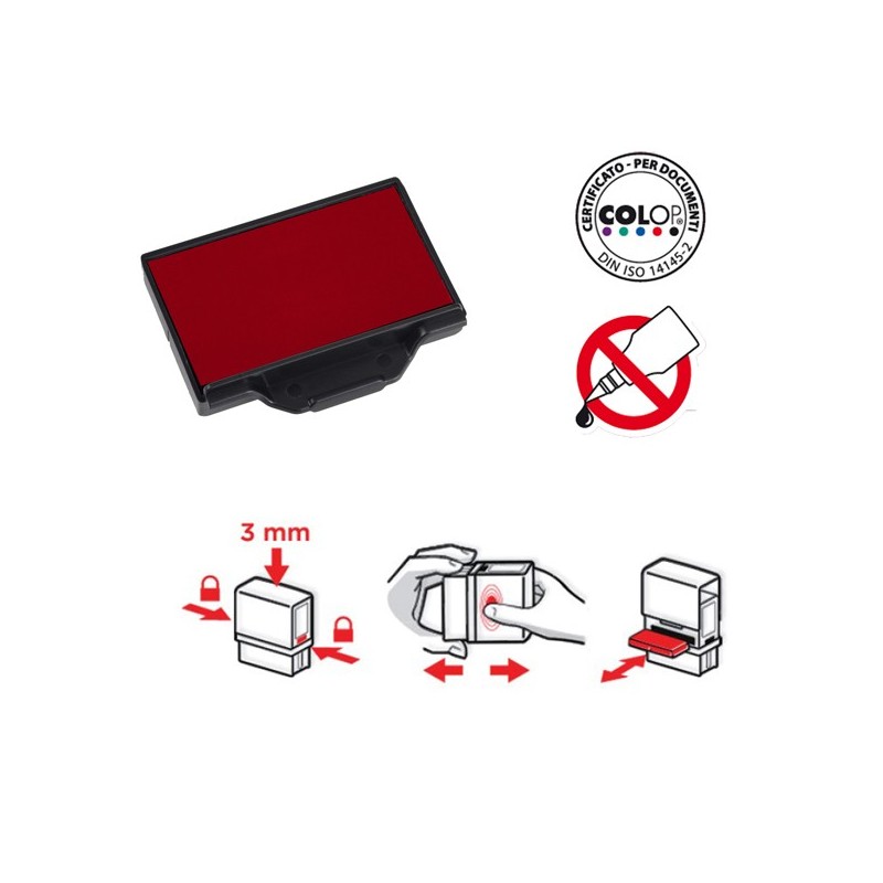 Cuscinetto inchiostrato di ricambio per timbri Colop, facile da sostituire grazie al sistema pop-out/snap-in. Una volta esaurito il cuscinetto deve essere sostituito, non Þ idoneo ad essere reichiostrato. Confezione da 5 pezzi.